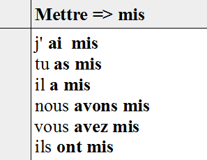 Passé composé avec AVOIR